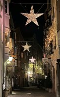 Der „kleine Stern“ trifft auf seiner Reise viele: den Seestern, die Hotelsterne, den Holzstern an der Haustür und einen Glitzerstern der Weihnachtbeleuchtung nicht aber den Stern von Bethlehem. Der Zimtstern meint, dass den vielleicht schon jemand gegessen hat! Am Weg steht eine große rote Blume, die sich vorstellt: „Ich heiße zwar Weihnachtsstern, aber den Stern von Bethlehem kenne ich nicht.“ Ebenso die Schneeflocken: „Wir sind Eiskristalle und funkeln wie die Sterne." Müde setzt der „kleine Stern“ seine Suche fort.