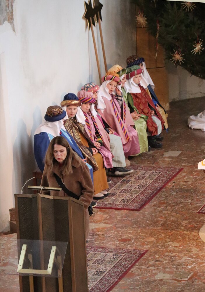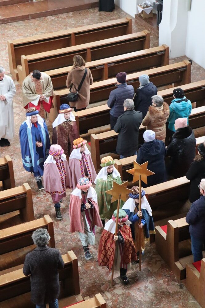 Kooperator Stephen und Pfarrkurator Bruno danken den Kindern, den Großen, die sie begleiten und allen Spendern. Der Chor Volders umrahmt mit weihnachtlichen Spirituals den Gottesdienst. Nach dem Neujahrssegen der Königinnen und Könige und der Wasser-, Salz- und Weihrauchweihe beschließen alle gemeinsam mit dem „Stille Nacht Lied“ den Festgottesdienst.
