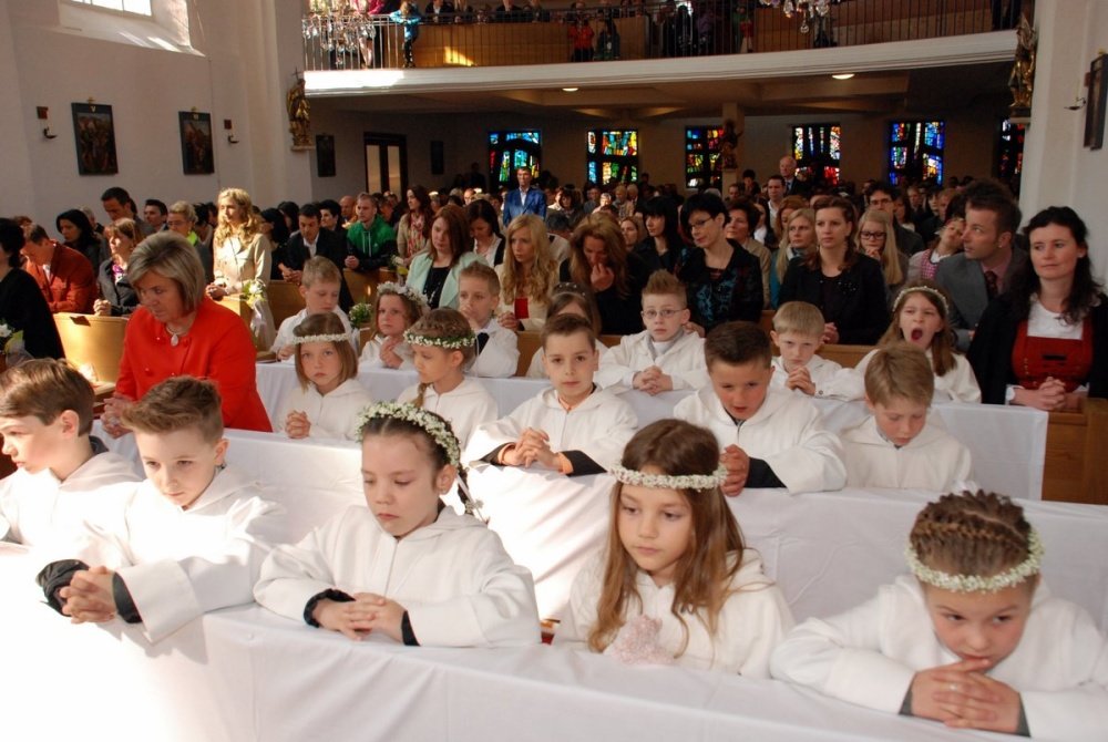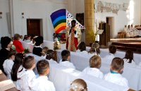 Mit dem Regenbogen und seinen Symbolfarben begann das Fest der Erstkommunion.