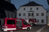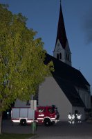 Kurz nach Ende des Donnerstagabend-Gottesdienstes ein ungewohntes Bild: Die Feuerwehr fährt mit mehreren Autos am Kirchplatz ein, Schläuche werden ausgerollt, Männer in Atemschutzanzügen steigen aus ... Ziel ist der östliche Kirchturmeingang.