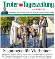 Die Tiersegnung in Volders schafft es sogar auf die Titelseite der Tiroler Tageszeitung - Sonntagsausgabe.