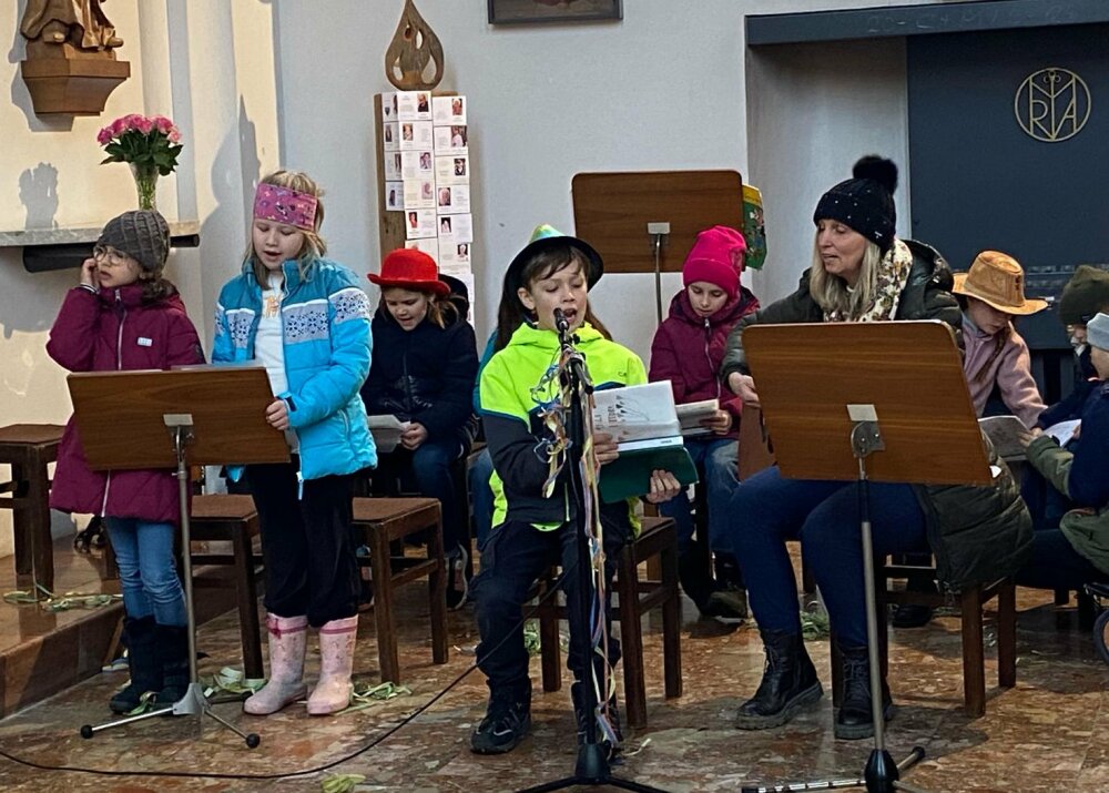 Familiengottesdienst zum Thema „Fasching - Freude erleben und teilen“. Zur fröhlichen Stimmung am Faschingssonntag tragen ein Clown und ein Gaukler mit ihren Späßen wesentlich bei. Kinder singen und spielen mit Religionslehrerin Maria. Eine Firmgruppe lädt zum Pfarrkaffee. Ein großes DANKE allen, die deutlich machen, dass Kirche auch fröhlich sei kann und mitgestalten und mithelfen! Fotos von Walter Plörer - DANKE!