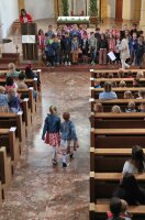 Auch mit diesem Lied (Text: Alois Albrecht, Melodie: Peter Janssens) beendeten die Volksschüler:innen das dritte durch Corona beeinflusste Schuljahr beim gemeinsamen Gottesdienst und machten sich auf den Weg in die Ferien, den der Elternverein mit Saft und Gebäck versüßte – und Eis gab’s auch.