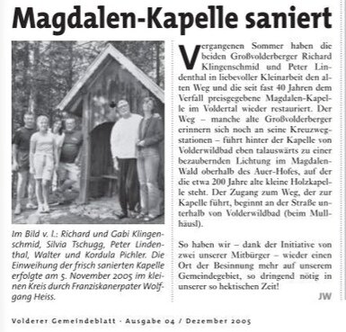 Text und Foto (leider längst entgangen) aus der Gemeindezeitung 2005