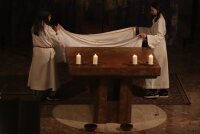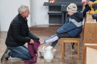 GRÜNDONNERSTAG Die Großen dieser Welt erschaffen sich Reiche durch die Macht und das Geld (vgl. Mt 20,25; Mk 10,42), „bei euch aber soll es nicht so sein“ (Lk 22,26). Gott handelt nicht so: Der Meister hat keinen Thron, sondern gürtet sich ein Tuch um und kniet sich zu Füßen eines jeden nieder. Sein Herrschaftsgebiet ist der kleine Raum, der ausreicht, um seinen Freunden die Füße zu waschen und sich um sie zu kümmern.