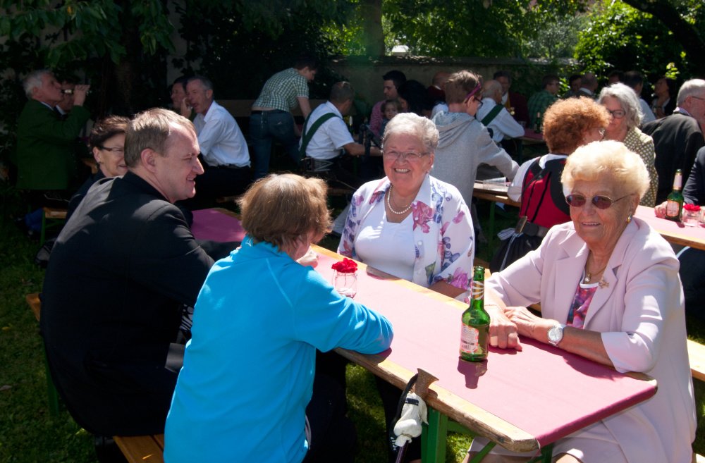 Der Einladung der Pfarre, ihren besonderen Tag beim Kirchenpatrozinium gemeinsam zu feiern, folgten sieben Paare. Danach saß man im Pfarrgarten gemütlich zusammen und stieß auf noch viele schöne gemeinsame Jahre an.