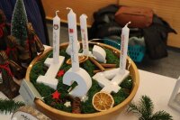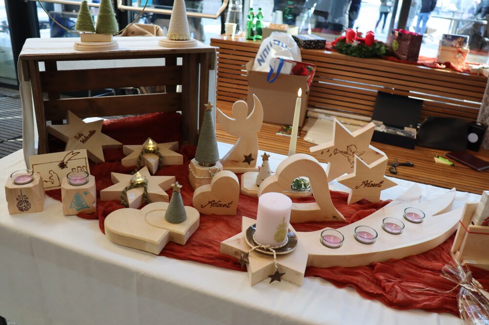 Wie immer: Adventkränze und -gestecke, verschiedenste Basteleien, großes Keks- und Kuchenangebot