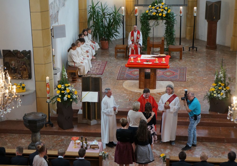 An die 4.000 Firmungen werden rund um das Pfingstfest in der Diözese Innsbruck gespendet. Der Firmspender Mag. Roland Buemberger, Regens des Priesterseminars Innsbruck-Feldkirch, knüpft am Dreifaltigkeitssonntag in Volders in der Predigt an das Evangelium von der Heilung des Blinden Bartimäus an. Jesus bleibt stehen, hört zu, sieht das Leid und hilft. „Sehend werden!“ ist der Aufruf an die Jugendlichen beim Eintritt in die Welt der Erwachsenen. Und der junge Salomo überlegt genau, ob er stark genug ist, die Königswürde zu übernehmen – und traut sich. „Seid mutig!“ empfiehlt der zweite Pfingstgedanke.