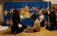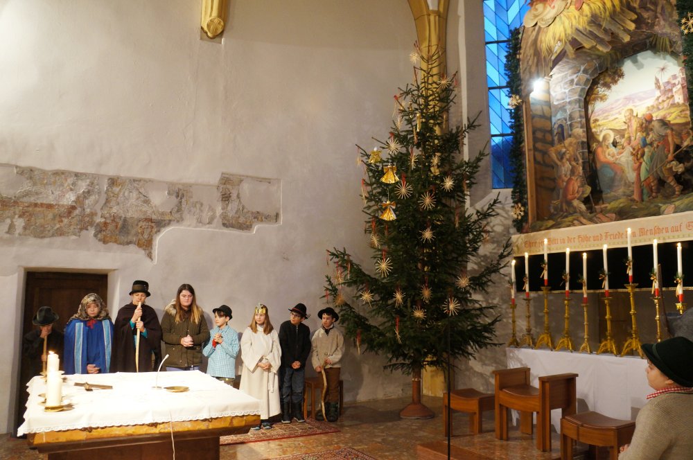 Bei der Kinderweihnacht wurde ein noch leerer Stall mit Personen und Tieren gefüllt, während Kinder die Weihnachtsgeschichte spielten. Der Stern, den die Kleinen bastelten, sollte sie zur Krippe führen. Danke den Müttern, die gemeinsam mit Bruno die Vorbereitung übernahmen! Das Krippenspiel der Kindermette stellten auch heuer wieder die Volderer Minis dar, für die musikalische Umrahmung sorgte die Familie Strickner – dafür herzlichen Dank!